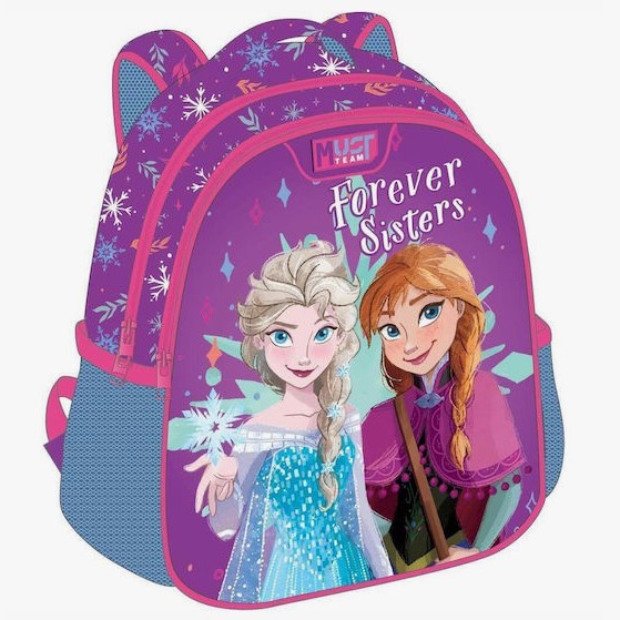 Σχολική Τσάντα Πλάτης Νηπίου Disney Frozen Forever Sisters Must Team, ιδανική τσάντα πλάτης προσχολικής ηλικίας που μεταφέρει με ασφάλεια, άνεση και ευκολία όλα τα απαραίτητα σχολικά είδη στο παιδικό σταθμό και το νηπιαγωγείο. Μια αυθεντική Disney σχολική τσάντα πλάτης νηπιαγωγείου, με εντυπωσιακό σχέδιο Disney Frozen, εργονομικούς ιμάντες και ανθεκτικά υλικά, συνδυάζει λειτουργικότητα και στυλ.