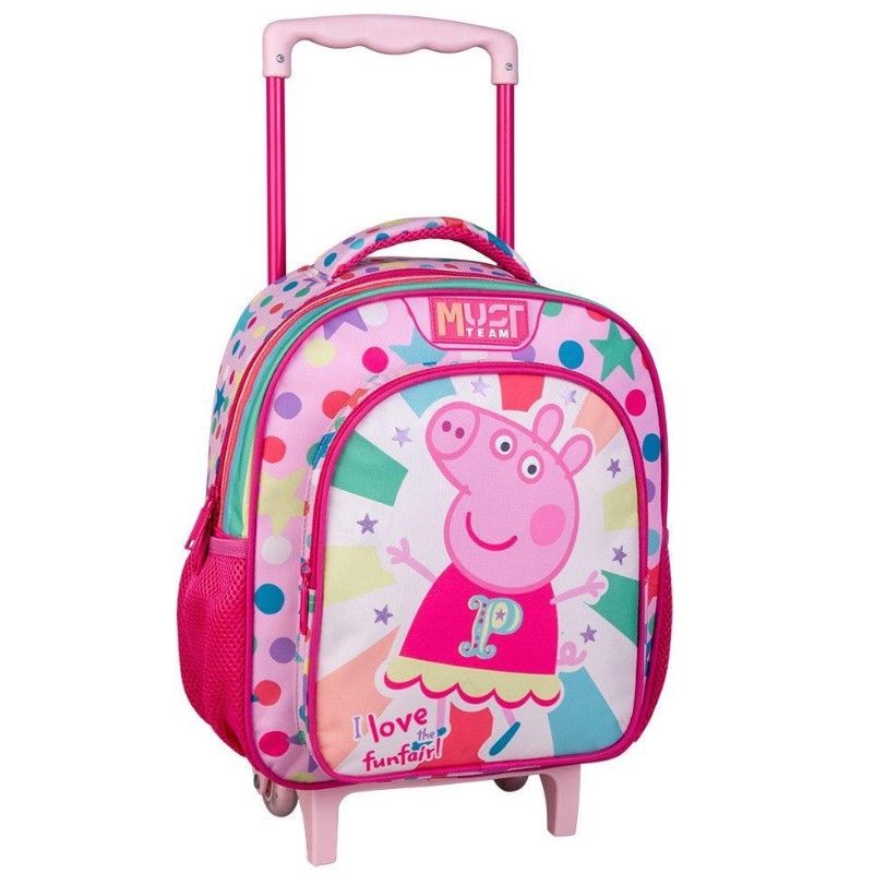 Σχολική Τσάντα Τρόλεϊ Νηπίου Peppa Pig I Love My Funfair Must Team 2 Θήκες, ιδανική επιλογή για παιδιά προσχολικής ηλικίας, μεταφέρει με ασφάλεια, άνεση και ευκολία όλα τα απαραίτητα σχολικά είδη στον παιδικό σταθμό και το νηπιαγωγείο. Με χαρούμενο και μοντέρνο σχεδιασμό εμπνευσμένο από την αγαπημένη Peppa Pig, κερδίζει αμέσως τις εντυπώσεις των μικρών μαθητών.