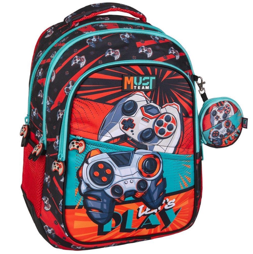 Η Σχολική Τσάντα Πλάτης Δημοτικού Must Team Let's Play με 3 θήκες είναι η ιδανική επιλογή για κάθε μαθητή που αγαπά τα video games και θέλει να συνδυάσει δυναμικό στυλ και άνεση στο σχολείο! Πρακτική και ανθεκτική σχολική τσάντα δημοτικού με εργονομικό σχεδιασμό για ασφαλή, άνετη και εύκολη μεταφορά όλων των απαραίτητων σχολικών ειδών στο σχολείο. Ένα ξεχωριστό σακίδιο πλάτης δημοτικού με σχέδιο τηλεχειριστήριο video games και έξτρα θήκη!