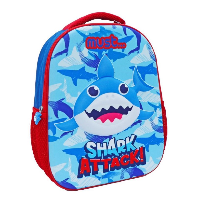 Η Σχολική Τσάντα Πλάτης Νηπίου Must 3D Eva Shark Attack ξεχωρίζει για τον εντυπωσιακό 3D καρχαρία που θα ενθουσιάσει! Ιδανική τσάντα πλάτης προσχολικής ηλικίας που μεταφέρει με ασφάλεια, άνεση και ευκολία όλα τα απαραίτητα σχολικά είδη στον παιδικό σταθμό και το νηπιαγωγείο.